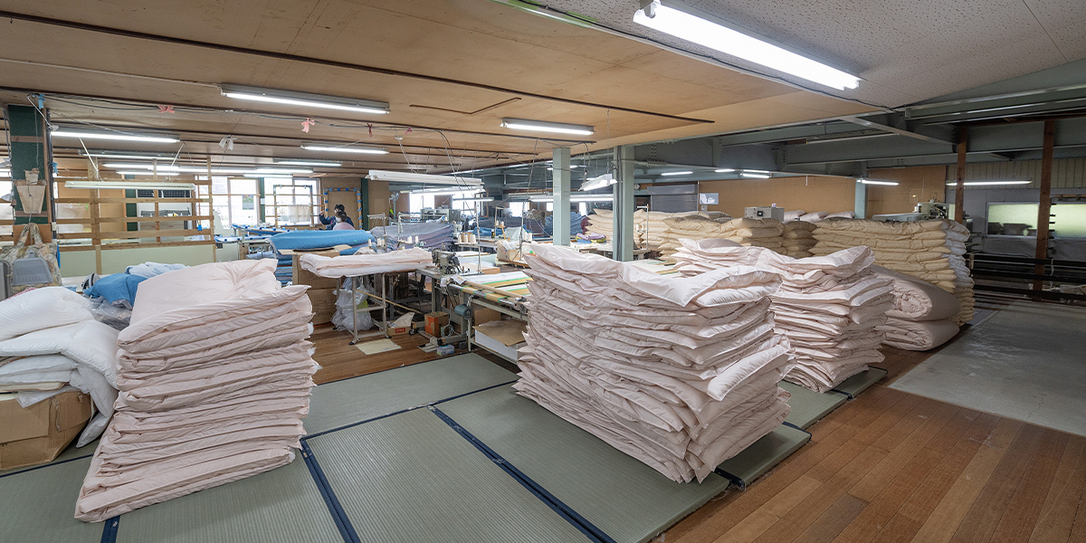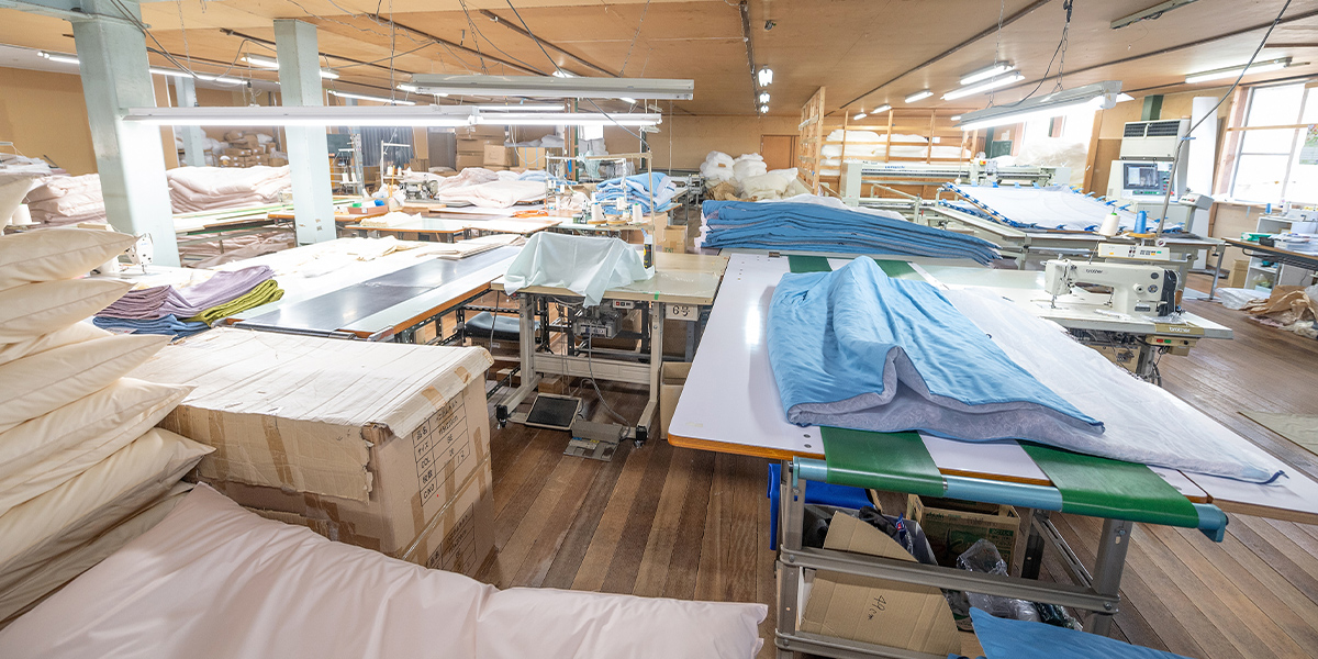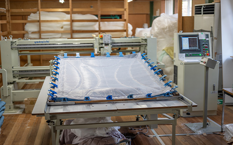 主に業務用寝具を製造しています 製品の品質はもちろんのこと、梱包まで手を抜くことなくお届けいたします。 工場 工場 裁断 裁断 裁断 縫製 縫製 縫製 縫製 縫製 綿工場 綿工場 綿成形機 綿入れ 綿入れ その他の工程 ボタン付け コンフォーターミシン(キルティング) コンフォーターミシン コンフォーターミシン ヘム ヘム 検針・梱包 検針 梱包 機器イメージ
